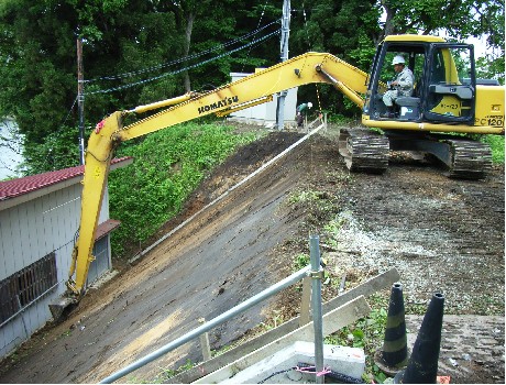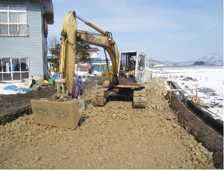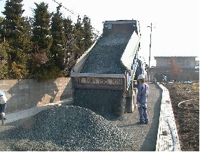 土留壁工事、U字溝入れ、下水溝の清掃、盛土工事(住宅増設の盛土・他)、砂利敷込工事(庭、道路、敷砂利)、